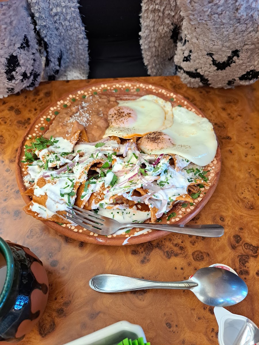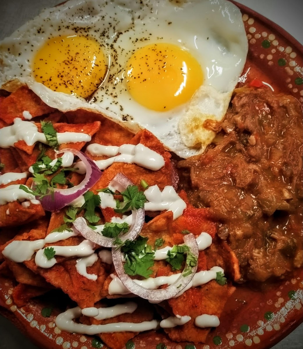 For a more filling breakfast, the Chilaquiles Con Frijoles Y Huevo Estrellado offers a satisfying balance of crispy tortilla chips, tangy red salsa, and a perfectly fried egg on top. Paired with beans on the side, it makes for a hearty meal that’s both comforting and delicious.
